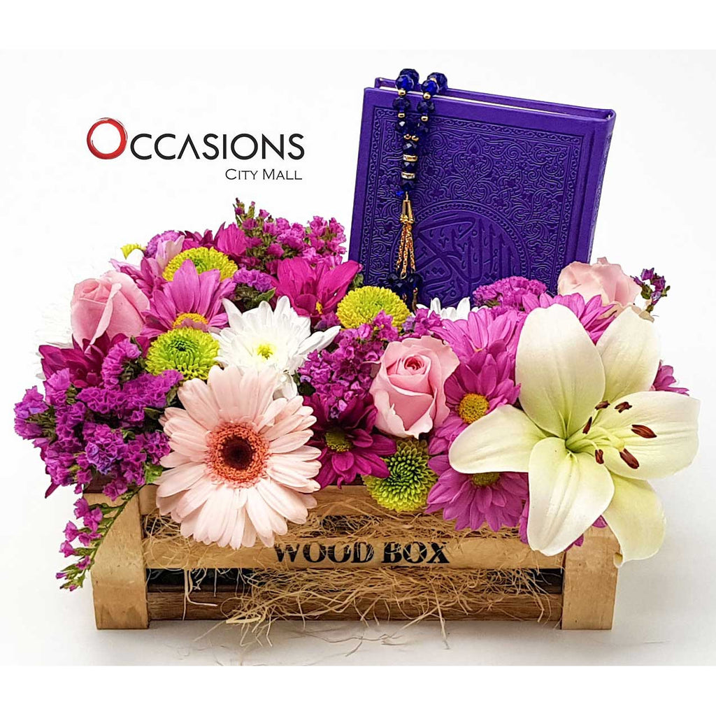 Quran With Merci Chocolate Drawer Arrangement – Blue