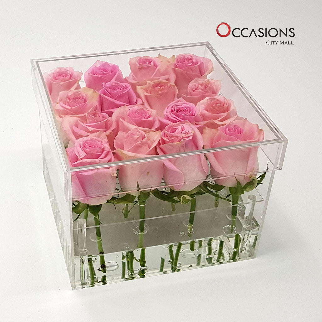 Pink Roses in Acrylic Box - 16 rose