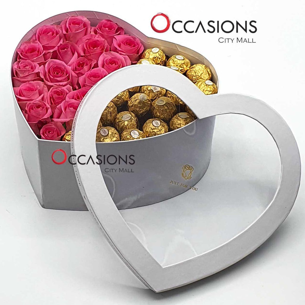 Pink Roses Heart with Ferrero - L