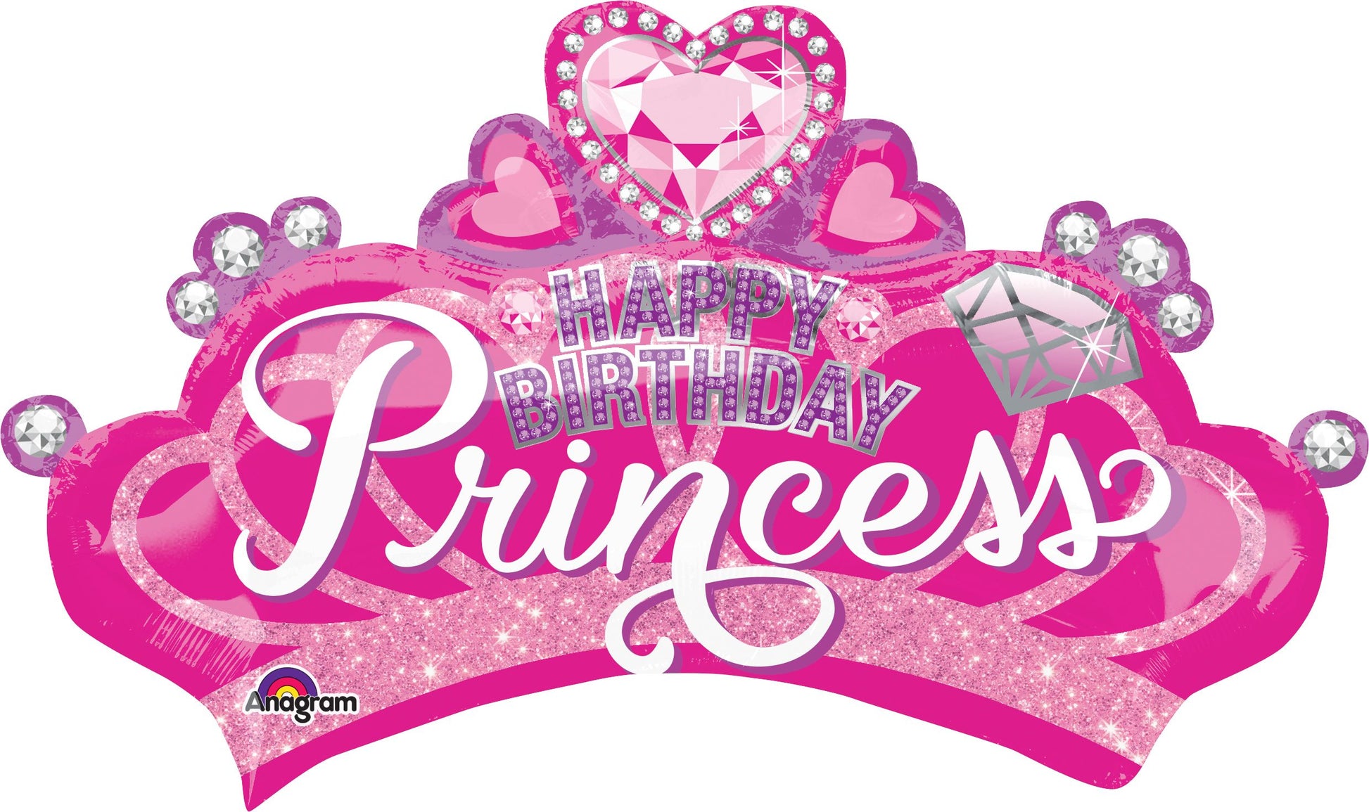 A beautiful jumbo size balloon with Happy Birthday princess. Add pink balloons and gifts to your order.